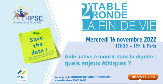 Après la Table ronde du 22 juin consacrée à l’accompagnement de la fin de vie en Europe, l’IPSE vous convie à participer le 16 novembre prochain à 17h30, à un nouveau temps d’échanges et de débats autour des enjeux éthiques soulevés par l’aide active à mourir dans la dignité. En compagnie de médecins, d’opérateurs de protection sociale et de représentants d’associations d’usagers de santé, la manifestation sera l’occasion de dresser un point d’étape sur les sujets éthiques liés à la fin de vie alors qu’une convention citoyenne, menée sous l’égide du CESE, engagera en décembre prochain ses premiers travaux sur la question.